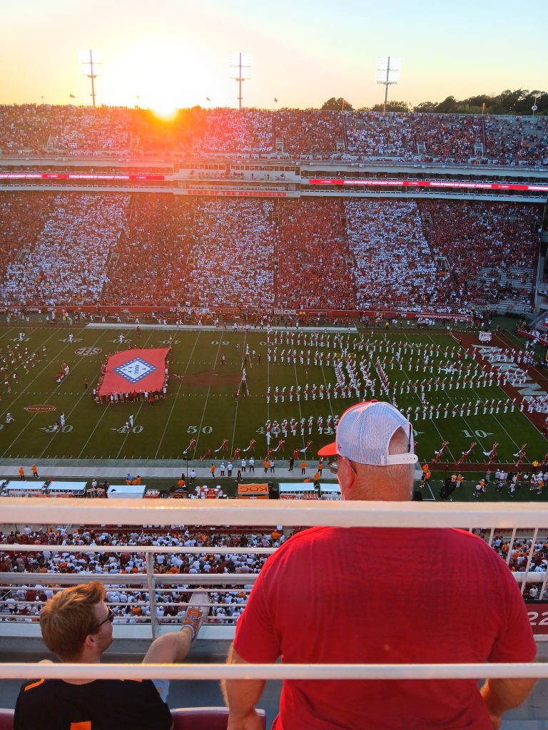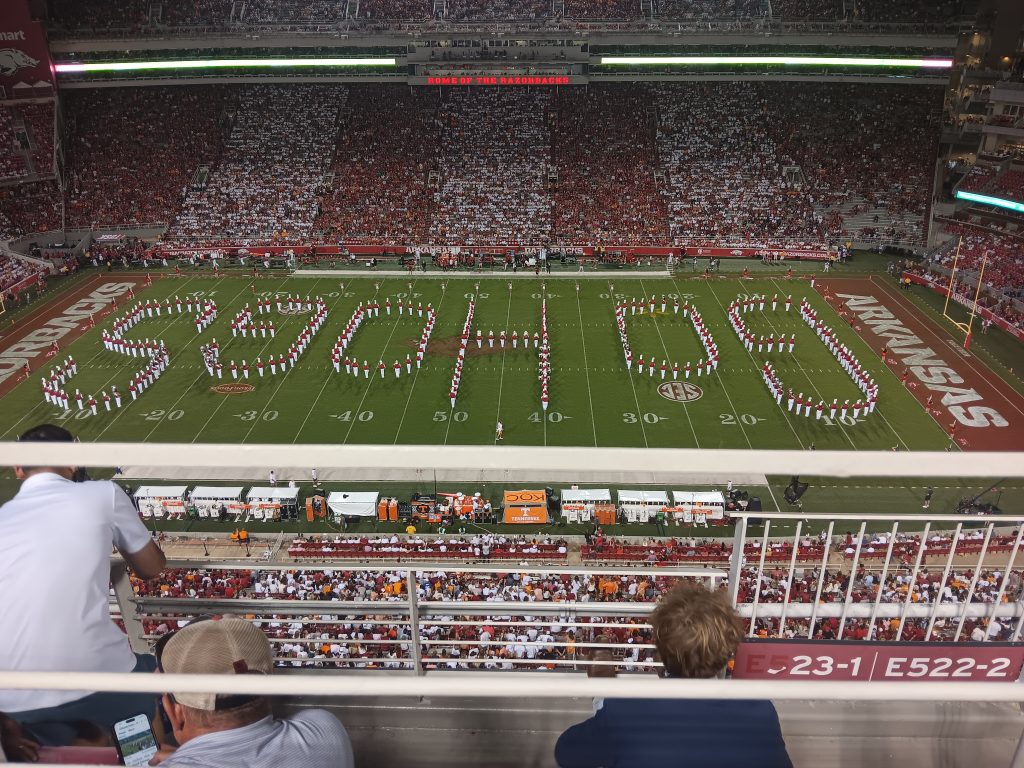 It was so hot, in fact, that I watched the first half of the game indoors rather than brave the long walk uphill to Donald W. Reynolds Razorback Stadium. Being indoors and surrounded by rowdy Vols fans with water on tap was in fact a far more pleasant experience than the blinding sunlight which greeted me when I got to the stadium itself. Although I didn’t quite understand the score still, the half time show was amazing! As, reflecting on football with newer knowledge, was the fact we beat them at all.