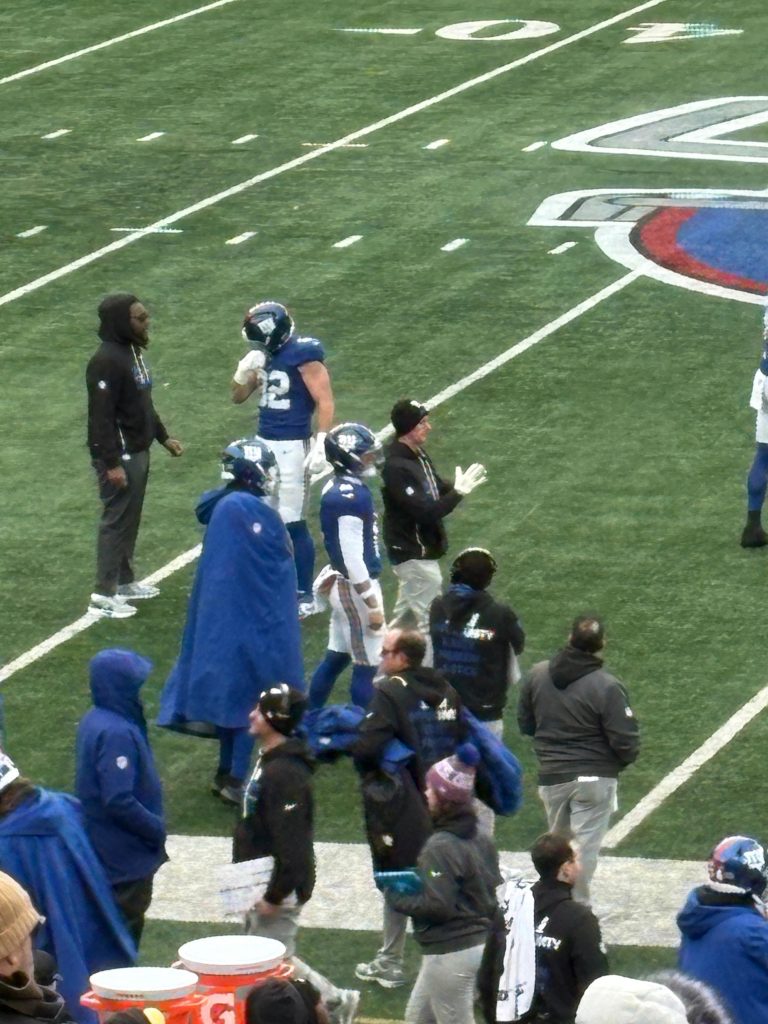 Having field access, we stayed put, taking photos at various points on the Metlife field. Perhaps in response to the deflated atmosphere of the attendees, or perhaps in yet another display of Christmas spirit, the New York Giants’ marching band took to the field and proceeded to deliver an electrifying ten minute performance. As a cheap-seat dweller, I’ve never been seated close enough to really appreciate the mix of musical talent and athletic ability which powers a marching band forward. I enjoyed it almost as much as watching my best friend experience the collective energy of a real game for the first time, and we can’t wait to go back to Metlife for the New York Jets vs Cleveland Browns game at some point next Fall.
